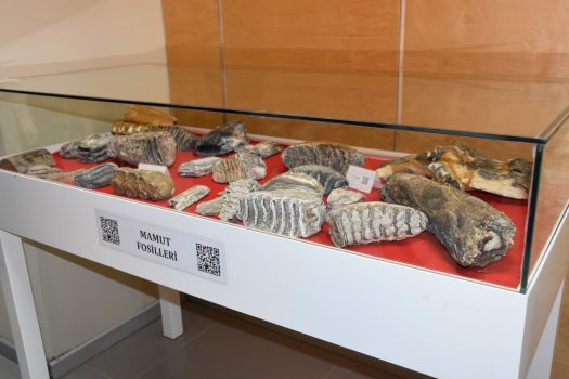 Fosiller, minareler, sestaşları, kayaçlar, madenler ve mermer gruplarına ait örneklerin yer aldığı sergiye 28 bin yıllık mamut kalıntıları damga vurdu.