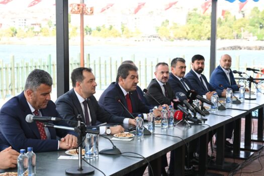 Rumeli iskelesinde gerçekleştirilen yerel yönetimlere ilişkin basın toplantısının deklarasyon metnini Tekirdağ Büyükşehir Belediyesi AK Parti Grup Başkanvekili Süleymanpaşa Belediye Başkanı Cüneyt Yüksel okudu.