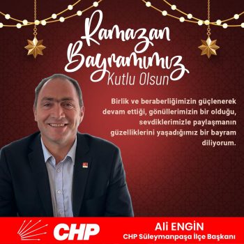 CHP Süleymanpaşa İlçe Başkanı Ali Engin, Ramazan Bayramı dolayısıyla bir kutlama mesajı yayımladı. Engin, mesajında birlik ve beraberliğin güçlenerek devam etmesi temennisinde bulunarak, gönüllerin bir olduğu, paylaşmanın güzelliklerinin yaşandığı bir bayram diledi.