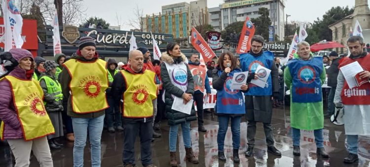 Ocak’tan itibaren vergi ve harçlara yüzde 44 zam yapıldı. 2025 bütçesine göre attığımız her adımda ödediğimiz KDV’de geçtiğimiz yıla göre yüzde 81, ÖTV’de ise yüzde 51 artış olacak. Hükümetin kendi alacaklarına yaptığı zam oranları ortadayken, kamu emekçilerine ve emeklilere reva görülen maaş artış oranının sadece yüzde 11,54 olması utanç verici bir durumdur. İş yerlerinde alın teri döken bizler, enflasyon karşısında ezilirken sermaye her geçen gün daha fazla kâr ediyor. Vergi yükünün büyük bölümü emekçilerin omuzlarına yıkılırken, zenginlerin vergi borçları birer birer siliniyor. Kamu kaynakları, halkın ihtiyaçları yerine sermayeye ve yandaş projelere aktarılıyor. Bu adaletsiz düzenin bedelini yıllardır neden sadece biz emekçiler ödüyoruz? Kamu emekçilerinin, işçilerin, emeklilerin “insanca yaşayacak ücret” taleplerini görmezden gelen siyasi iktidarın ücretlerimizi baskılayıp, boğazımızı sıkarak uygulamaya çalıştığı ekonomik programa karşı kamu emekçileri olarak itiraz ediyoruz” diye konuştu.