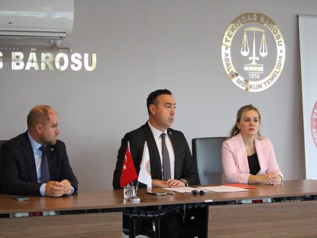 Basın toplantısının sonunda konuşan Av. Egemen Gürcün, Tekirdağ Barosu’nun hukukun üstünlüğü, yargı bağımsızlığı ve güçlü savunma için kararlılıkla mücadele etmeye devam edeceğini belirtti. “Demokratik değerlerin, temel hakların ve mesleğimizin geleceği için sorumluluğumuzu yerine getireceğiz” diyerek sözlerini tamamladı.