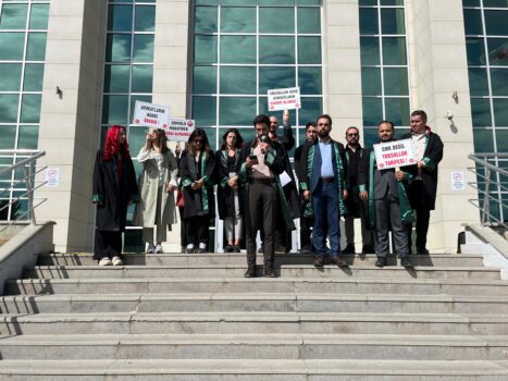 “Verilen hizmet bir kamu hizmetinden ziyade mevcut haliyle angaryaya dönüştürülmüştür. Ayrıca belirtmek isteriz ki uzun süren yargılamaların varlığı düşünüldüğünde, verdiğimiz hizmetin karşılığında ödenecek ücret, açıkçası yol ve yemek gibi temel masraflara dahi yetmemektedir. Bu ekonomik baskının esas nedeni avukatı yoksullaştırmaktan ziyade, yurttaşı avukatsız bırakmaktır. Biz yurttaşın savunulma hakkı için alanlardayız! Savunmanın susmadığını, susmayacağını bilmeleri gerekir. Onlar avukatın susması durumunda hukuka aykırılıkların gün yüzüne çıkmayacağını biliyor. Onlar avukatın susması durumunda adil yargılanma hakkının çiğnendiğinde görünmeyeceğini biliyorlar. Onlar avukatın susması durumunda güçsüzün adalet karşısında yalnız kalacağını, güçlünün ise kayrılacağını biliyorlar. Bilmedikleri şey ise savunmanın susturulamayacağı, biat etmeyeceği, boyun eğmeyeceğidir”