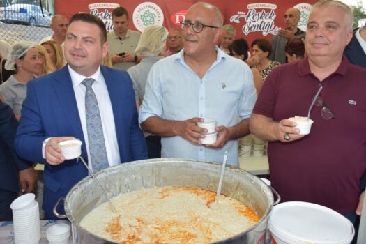Süleymanpaşa Belediyesi tarafından hazırlanan keşkekleri şenlik alanına gelen vatandaşlara ikram etti.
